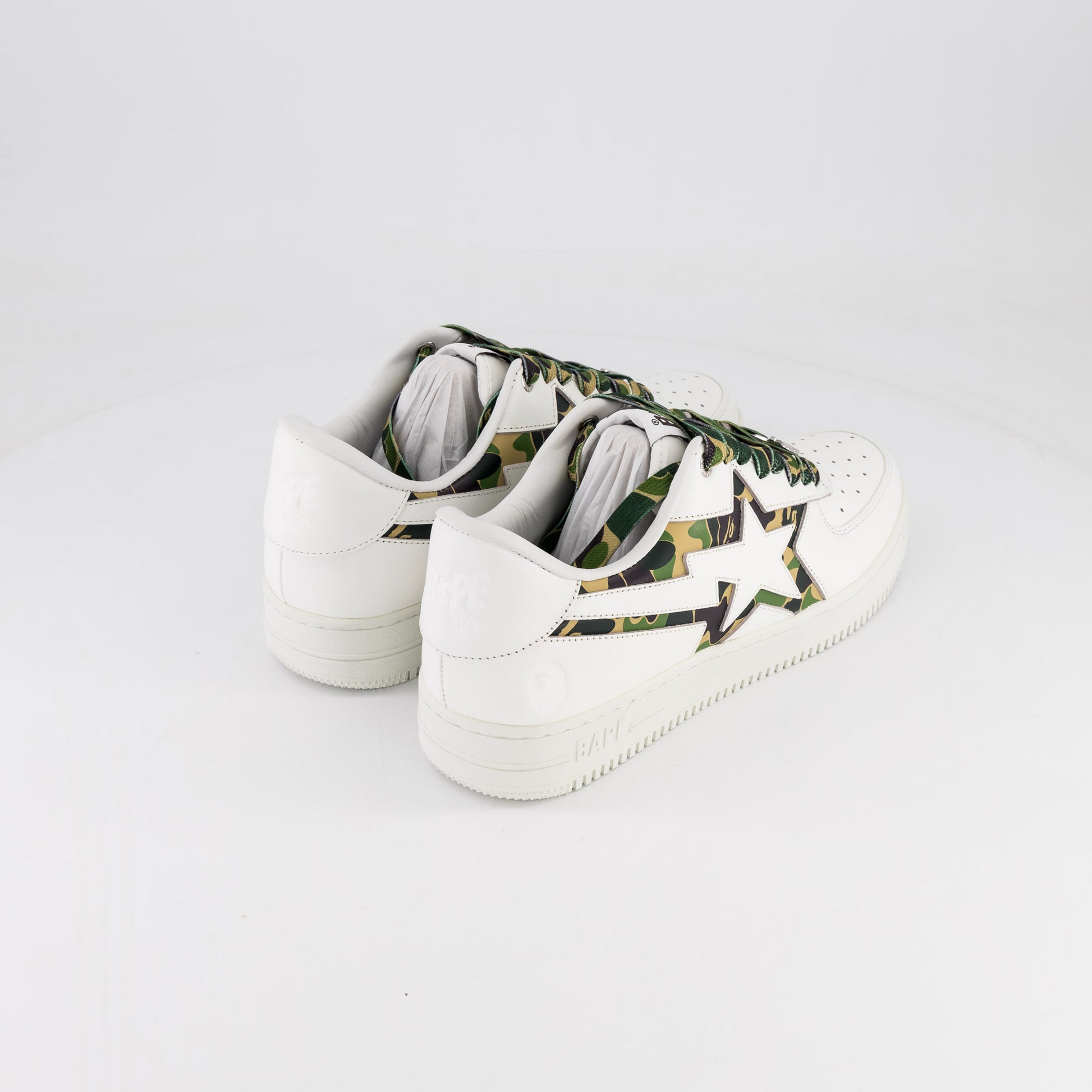 Arriving in the BAPE STA’s signature silhouette, the shoe features a cut-out STA shape on both its medial and lateral sides. What sets the BAPE STA ICON apart from its preceding models is the print and color allocation. The crisp white STA shape is accentuated by the brand’s emblematic ABC CAMO print in a matching silhouette, while the graphics are also echoed on the shoelaces in its corresponding colorway.