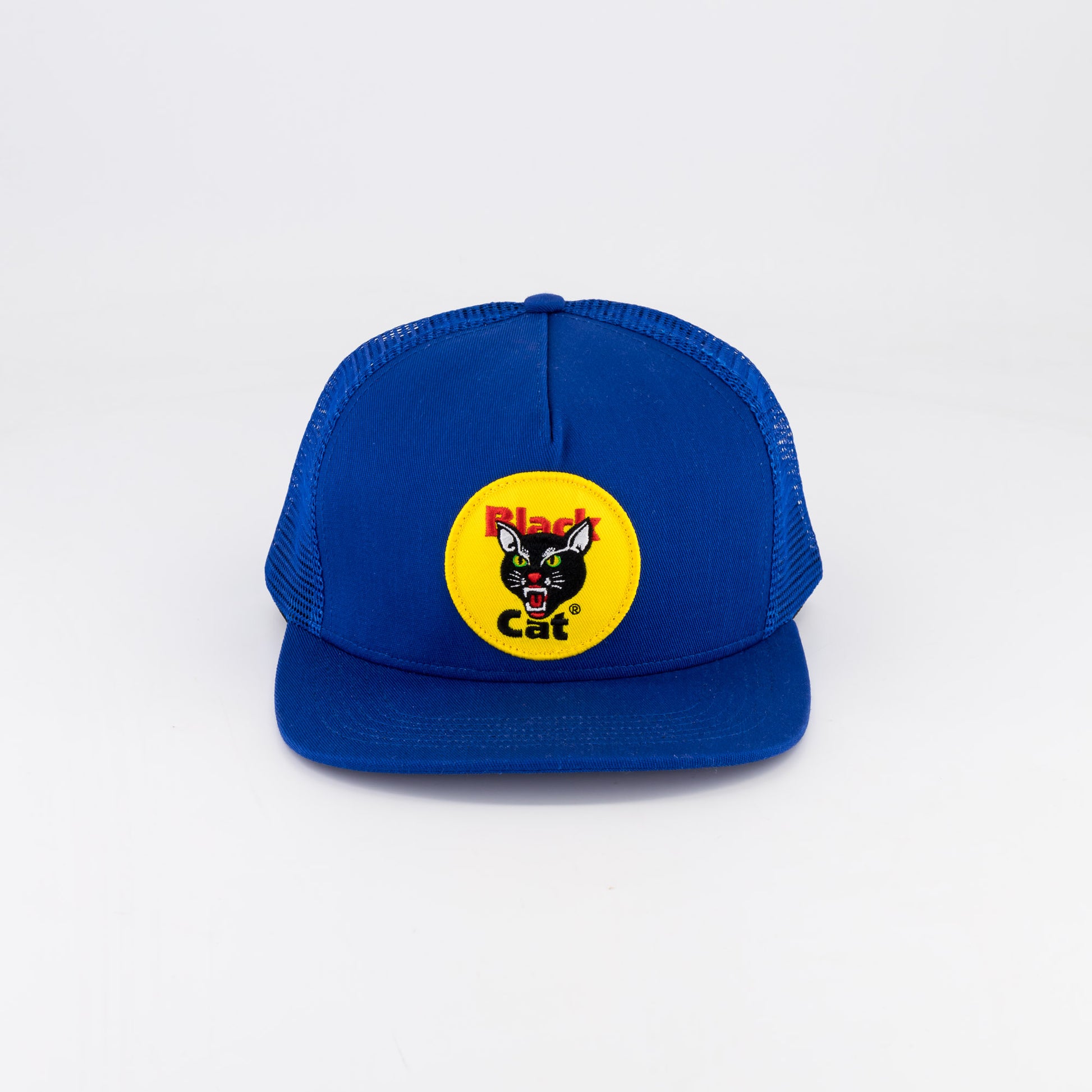 Cotton blend twill 5-Panel hat with mesh back and snap closure. Embroidered patch on front and embroidered logo on back.