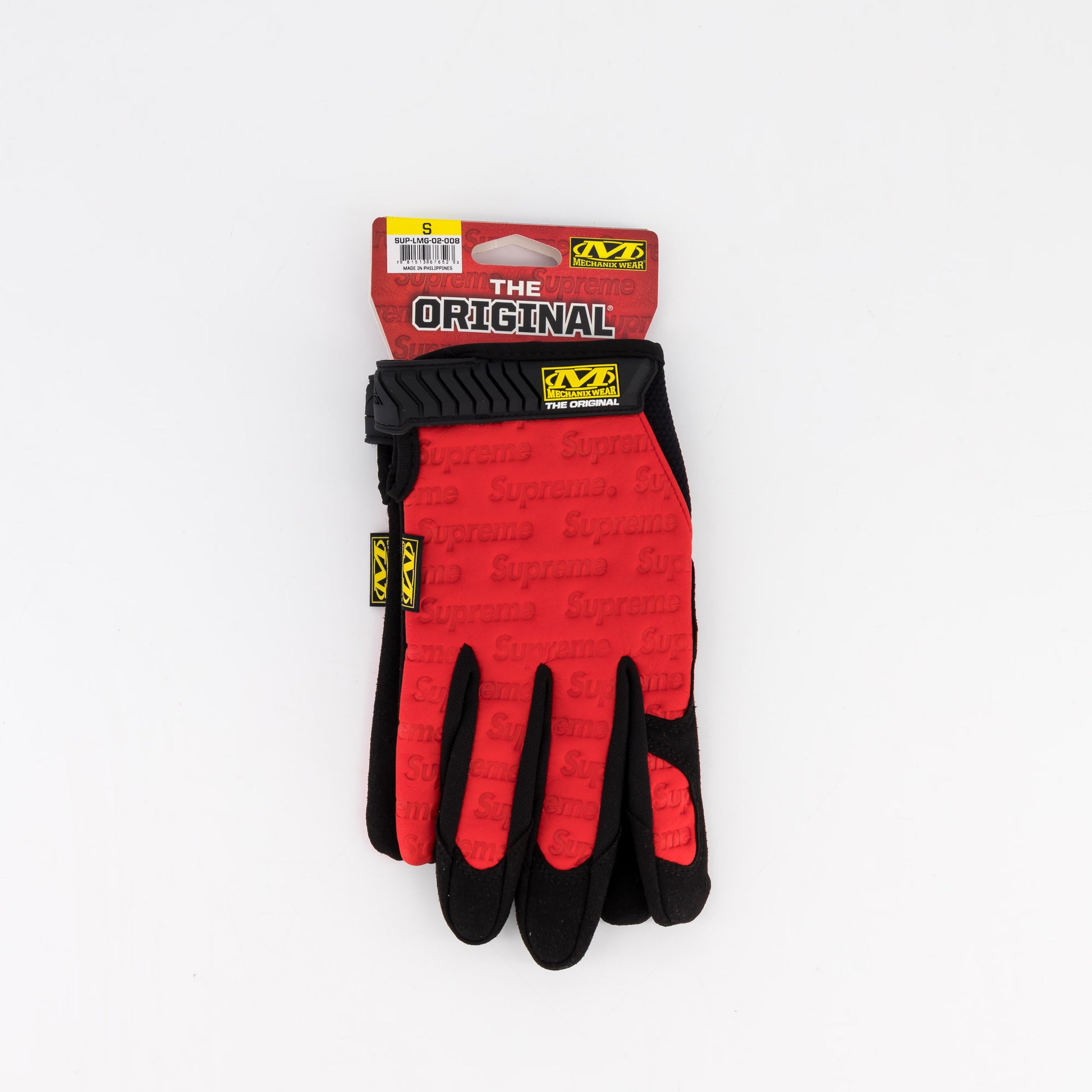Mechanix® leather work gloves with debossed logo pattern and velcro closure at wrists. Made exclusively for Supreme.