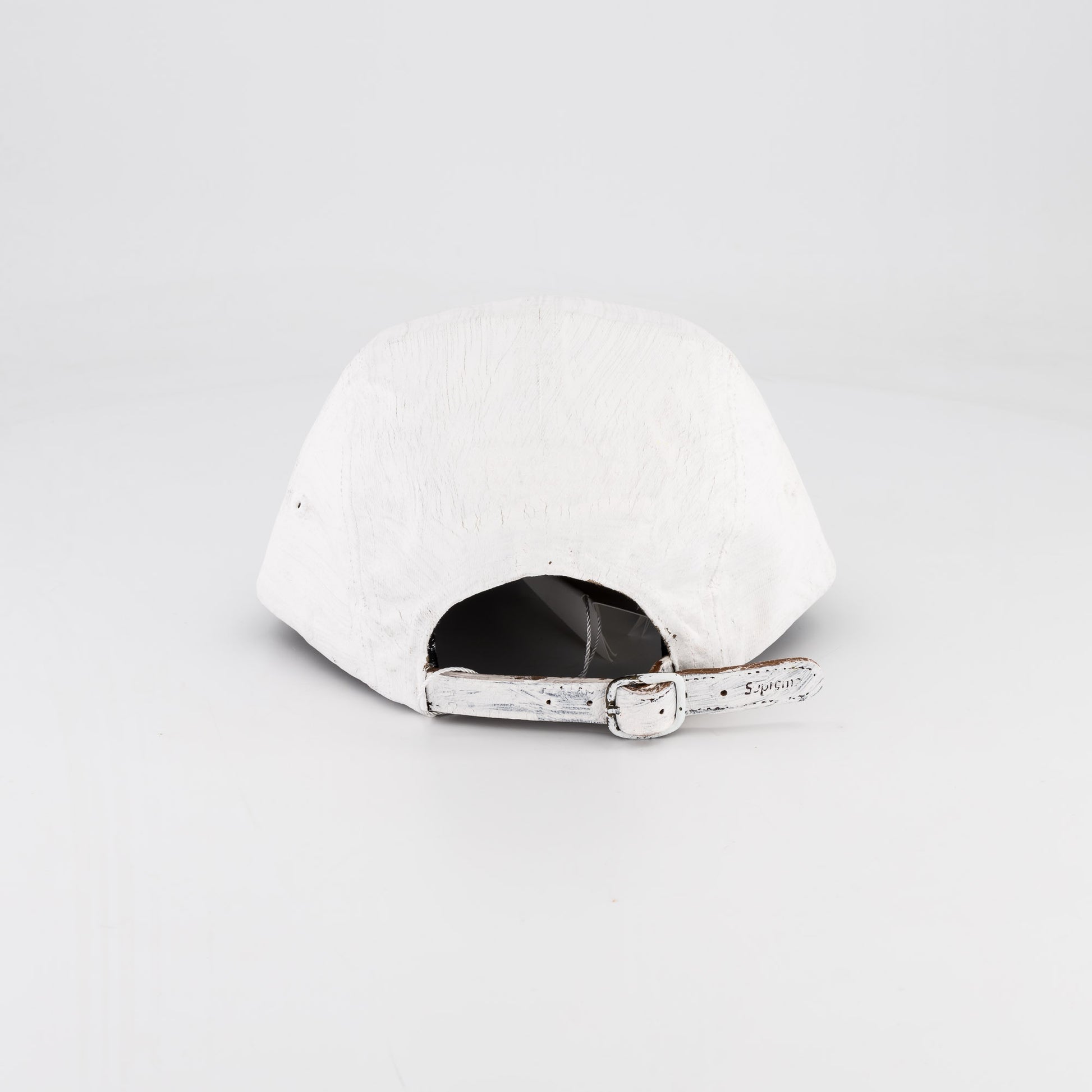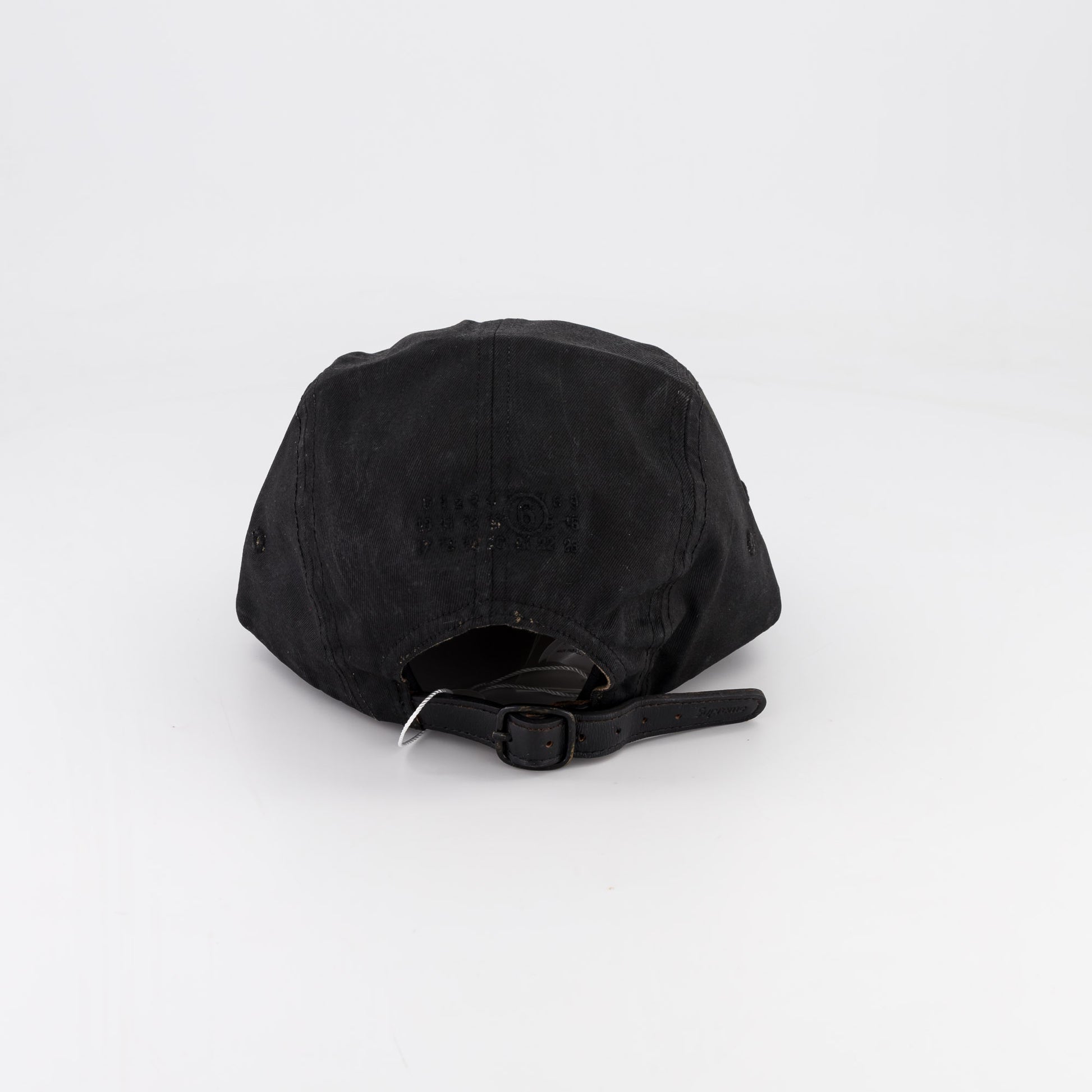 Painted cotton Supreme camp cap with custom debossed leather strap closure. Embroidered MM6 numeric signature at back.