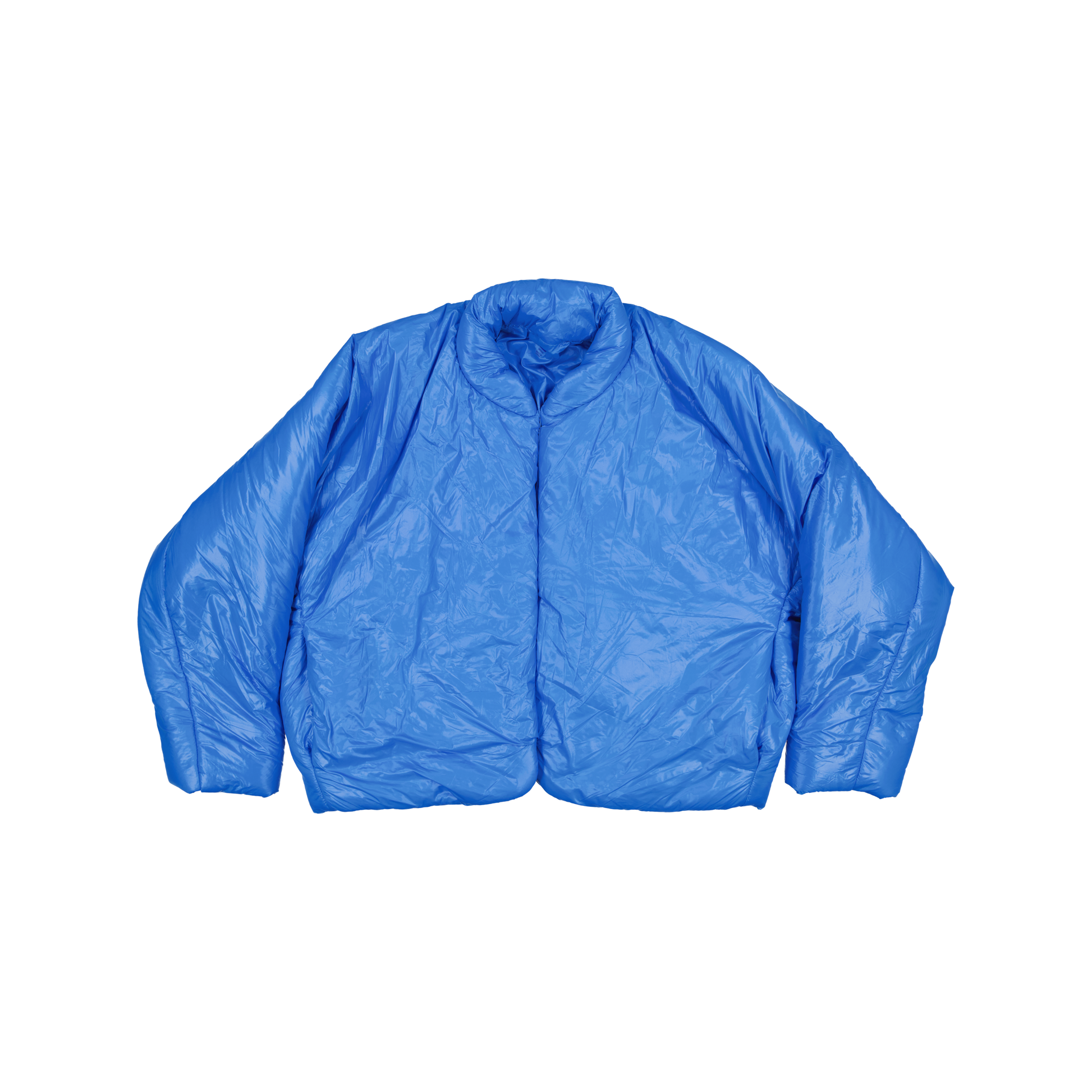 Released on Kanye West's 44th birthday, this Yeezy x GAP Round Jacket in blue is the very first piece to ever release from the artist's collaborative relationship with GAP. The Yeezy x GAP Round Jacket was made available on GAP's website for pre-order and was expected to arrive in Fall of 2021.